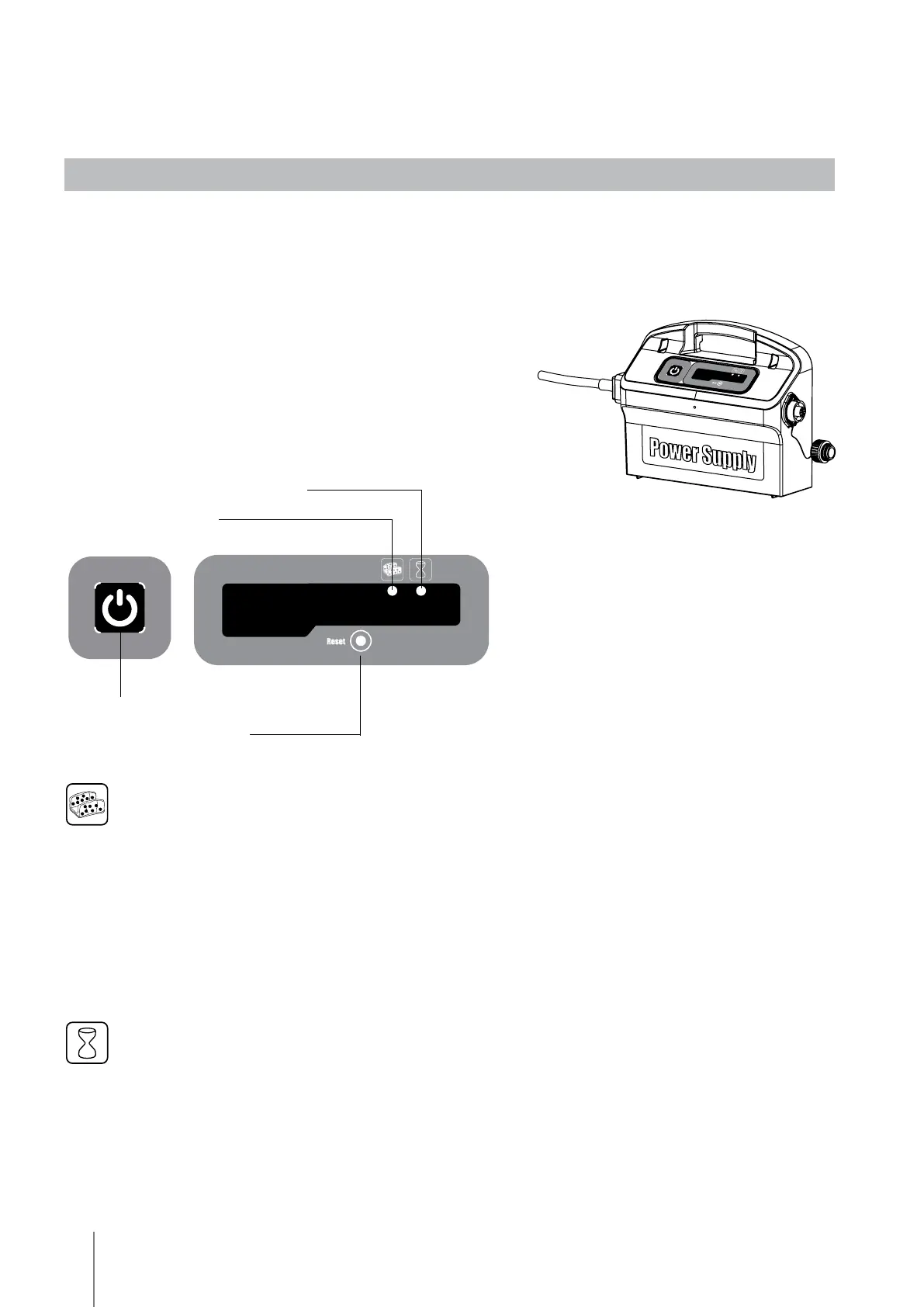 A fonte de alimentação está equipada com um indicador de atraso que indica se a opção de atraso está