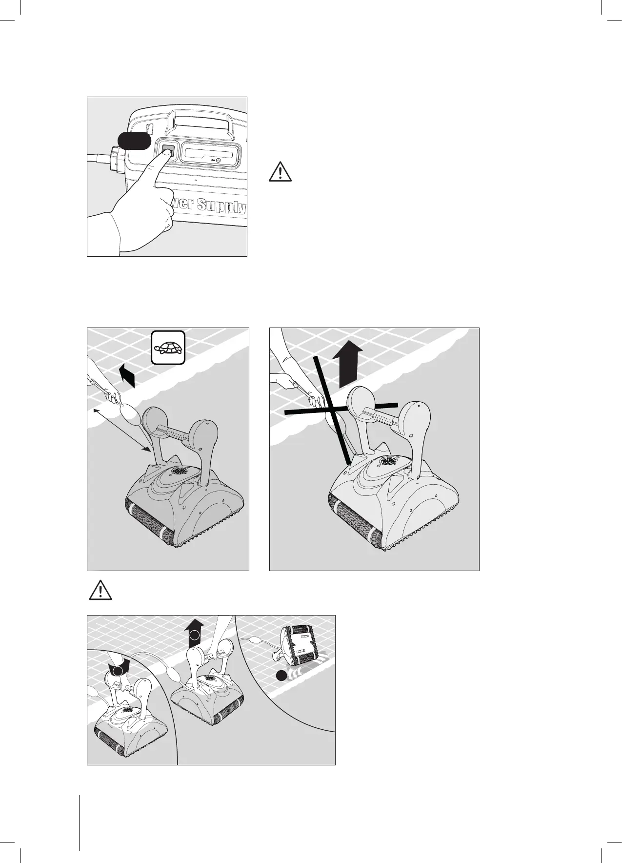DO NOT PULL THE POOL CLEANER FROM THE POOL USING THE CABLE.