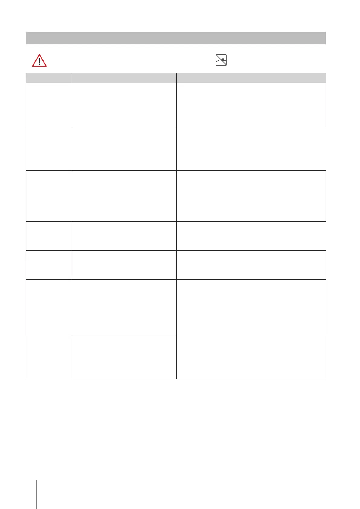 Symptom Possible reason Corrective action