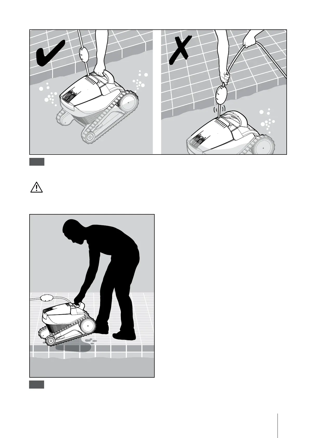 TREK NOOIT AAN DE KABEL VOOR HET VERWIJDEREN VAN DE ZWEMBADREINIGER UIT