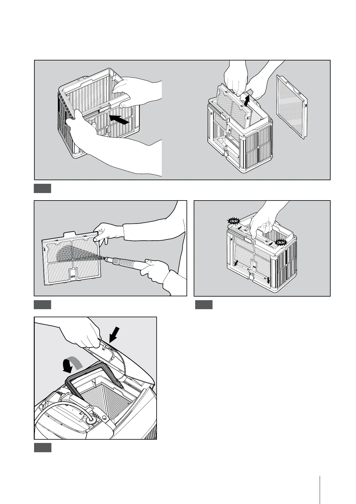 Demonteer de 2 ultrafijne filter panelen van de korf op de volgende manier: