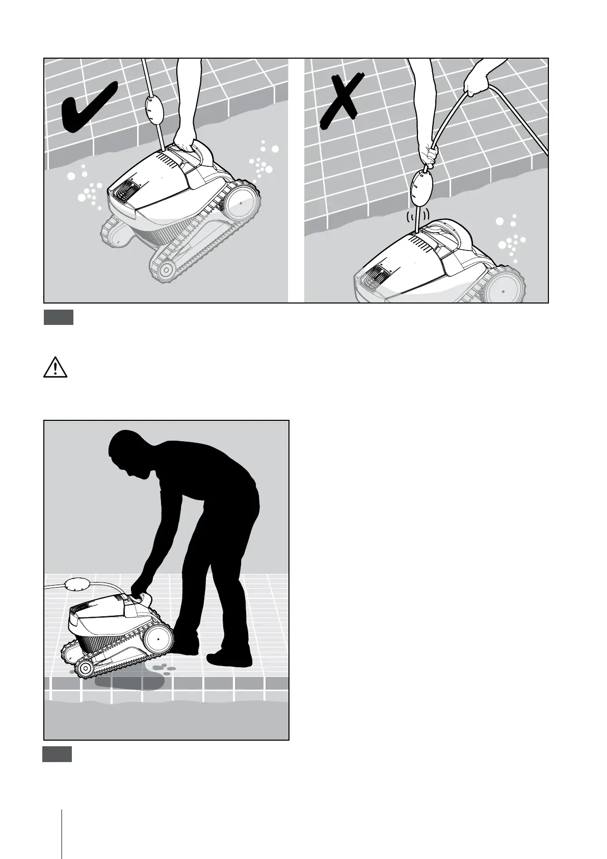 NÃO RETIRE O ASPIRADOR DA PISCINA UTILIZANDO O CABO.