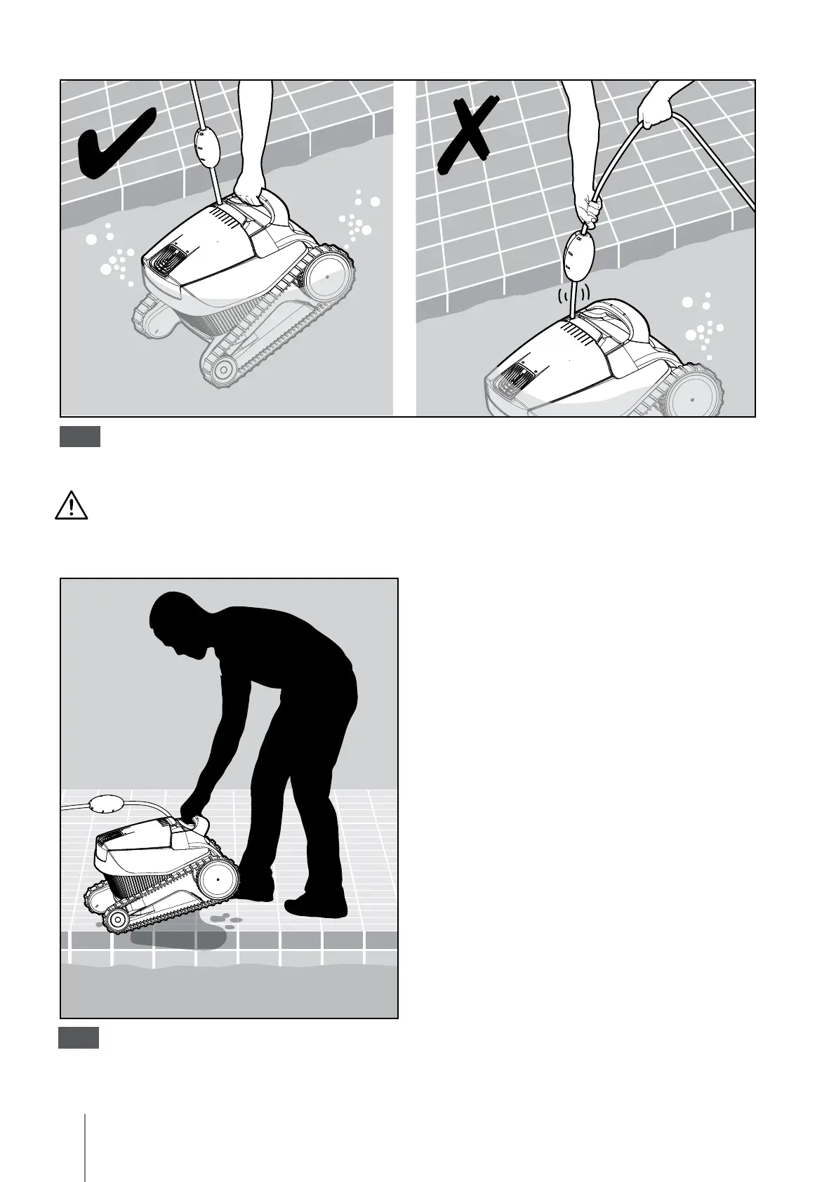DO NOT PULL THE POOL CLEANER FROM THE POOL USING THE CABLE.