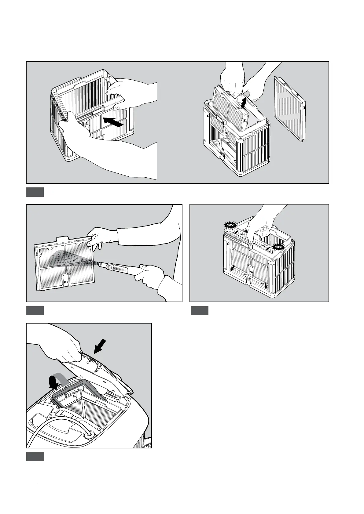 Dismantle the 2 ultra-fine filter panels of the basket, according to the following steps: