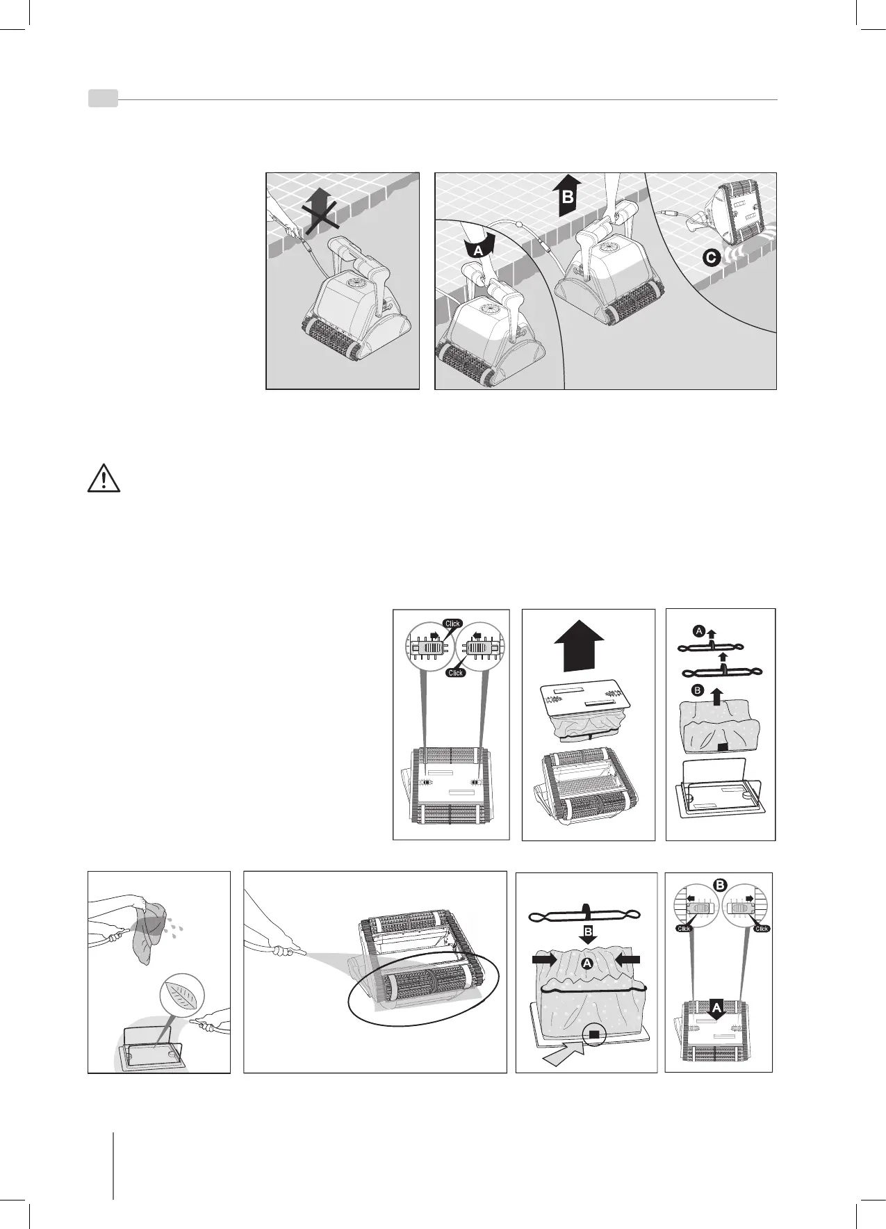NÃO RETIRE O ASPIRADOR DA PISCINA UTILIZANDO O CABO.
