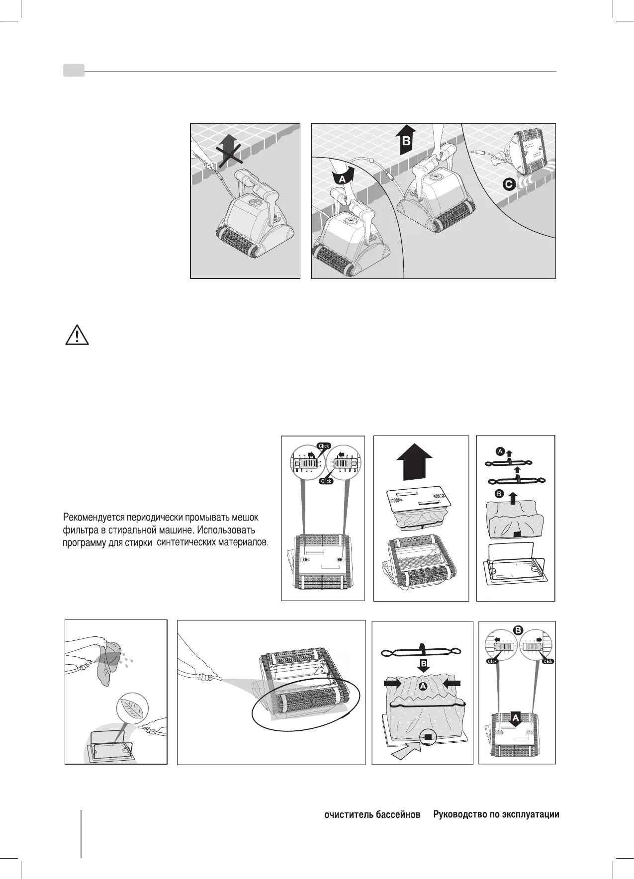 НЕ ВЫТАСКИВАЙТЕ РОБОТ ИЗ БАССЕЙНА С ПОМОЩЬЮ КАБЕЛЯ.