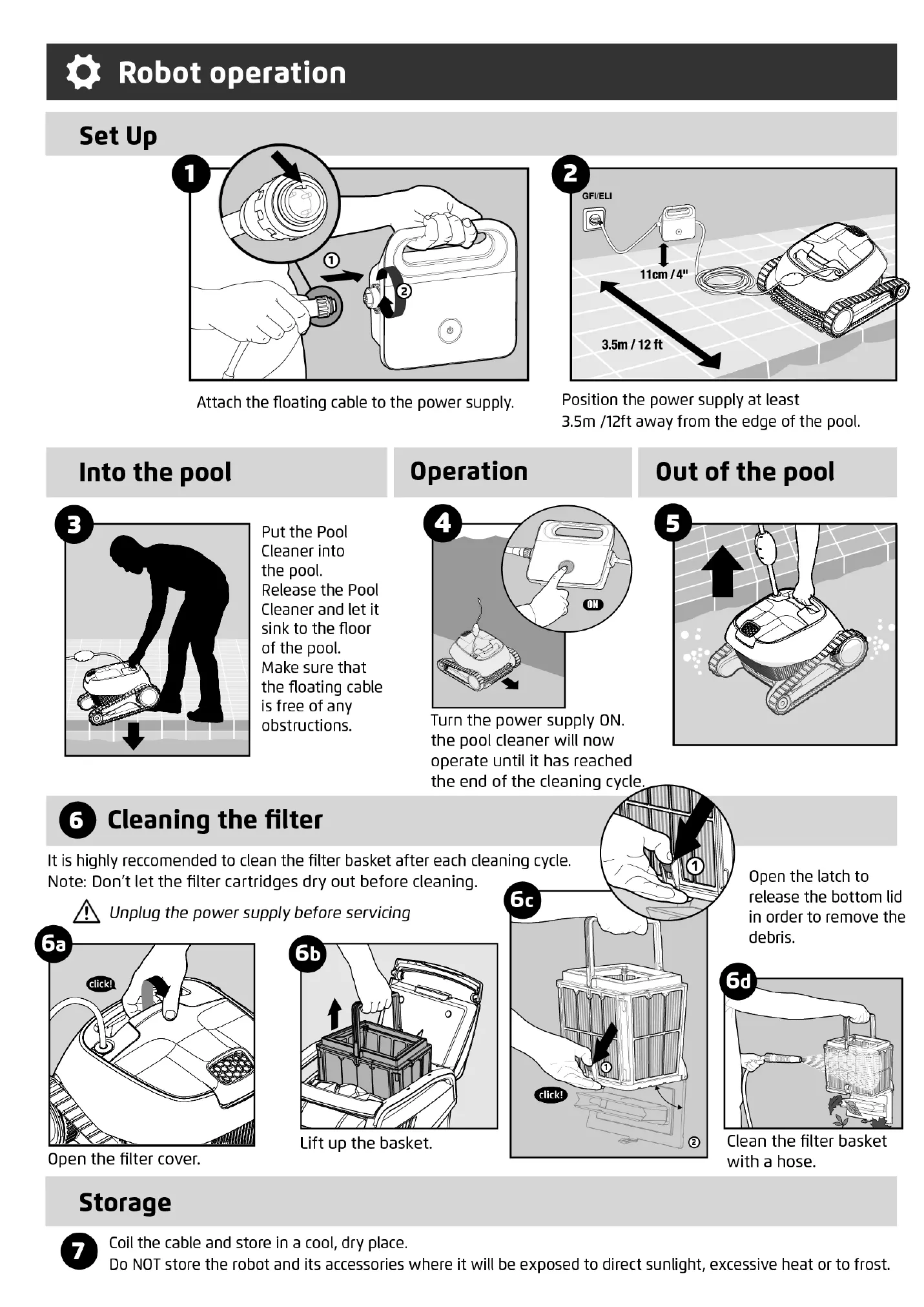 Do NOTstore the robot and its accessories where it will be exposed to direct sunlight, excessive heat or to frost.