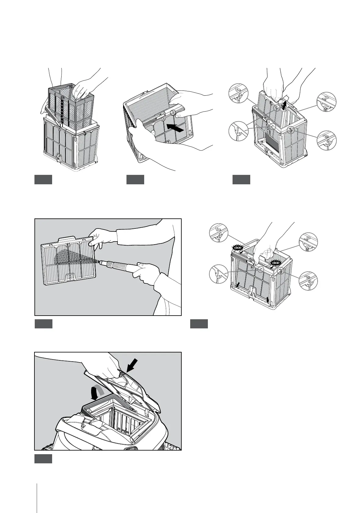 Dismantle the 4 ultra-fine filter panels of the outer basket, according to the following steps: