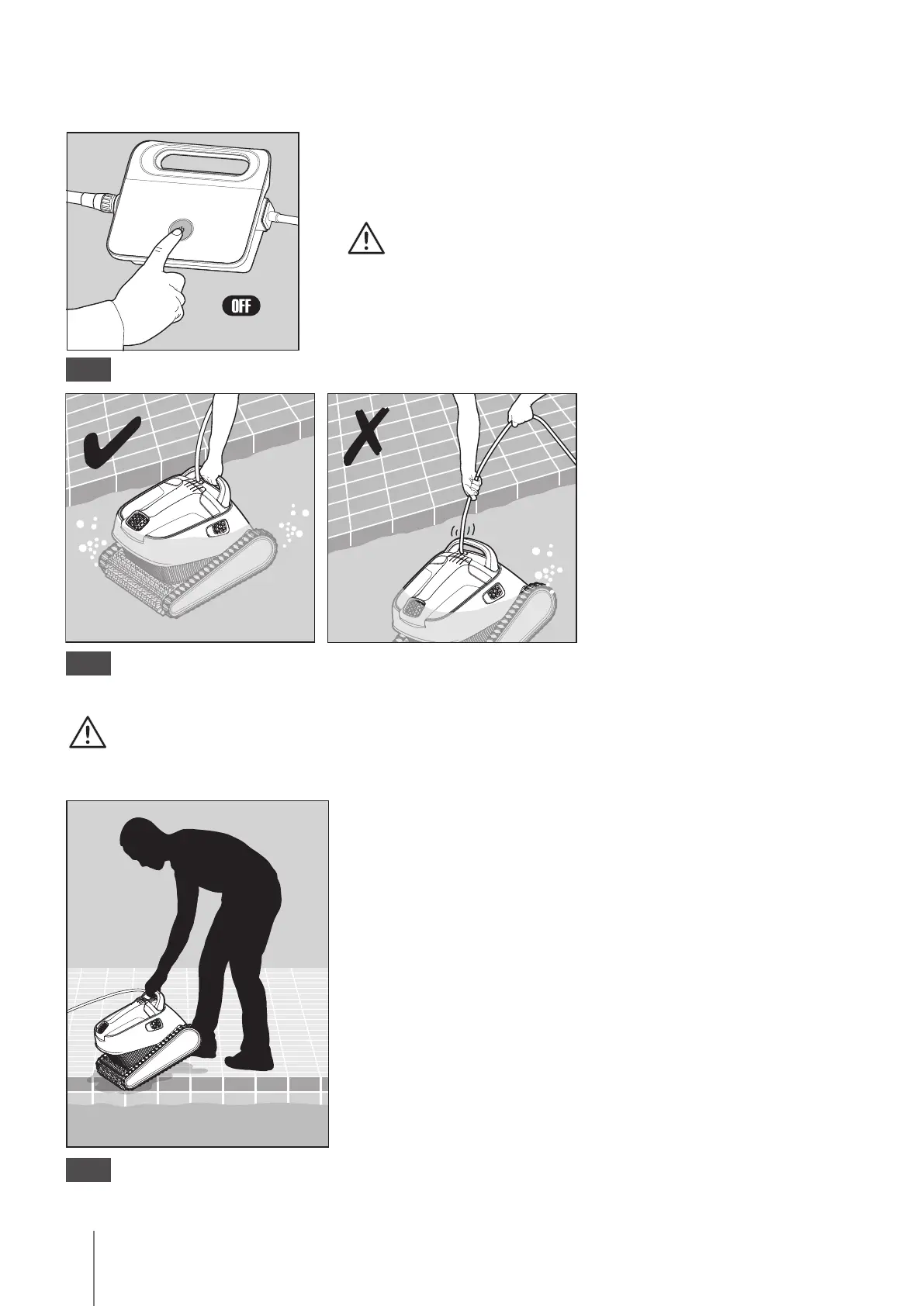 DO NOT PULL THE POOL CLEANER FROM THE POOL USING THE CABLE.