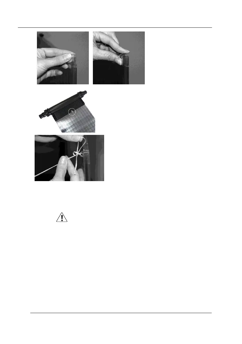 the external clasps on the stand. Pull the string
