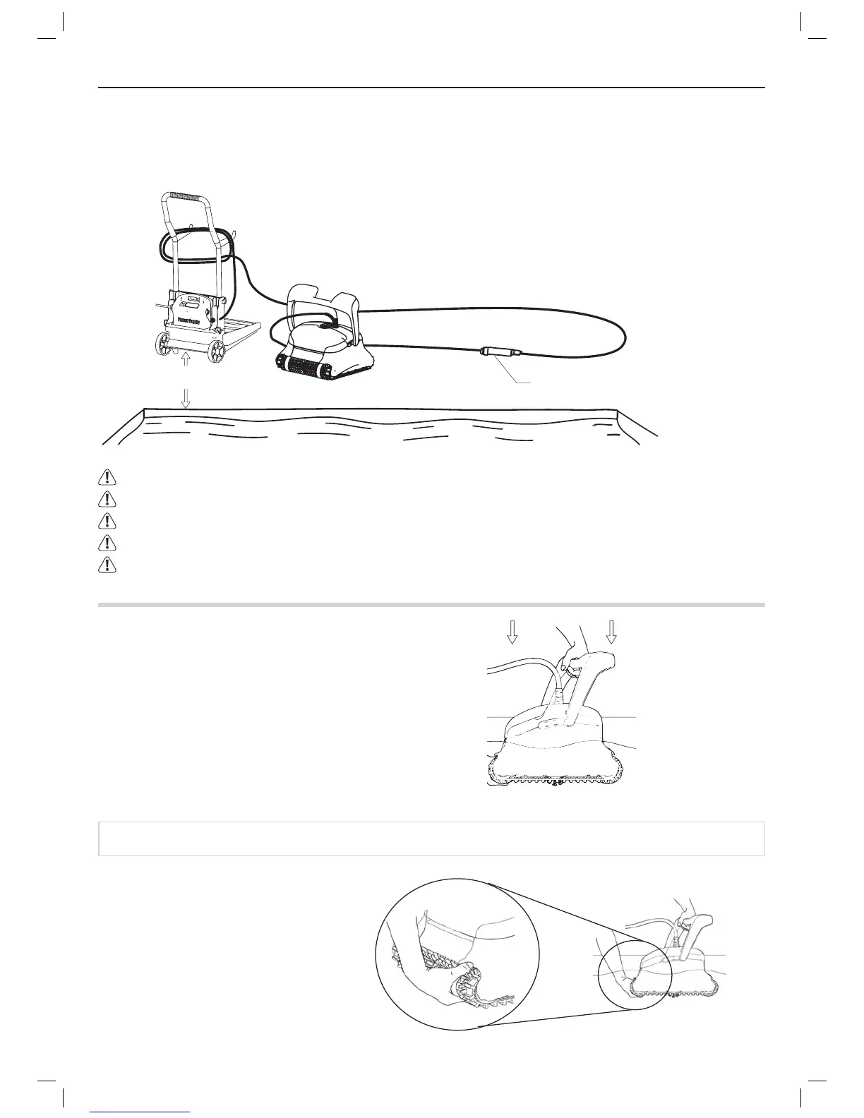Ne branchez pas l’alimentation avant d’avoir placé le robot nettoyeur dans l’eau.