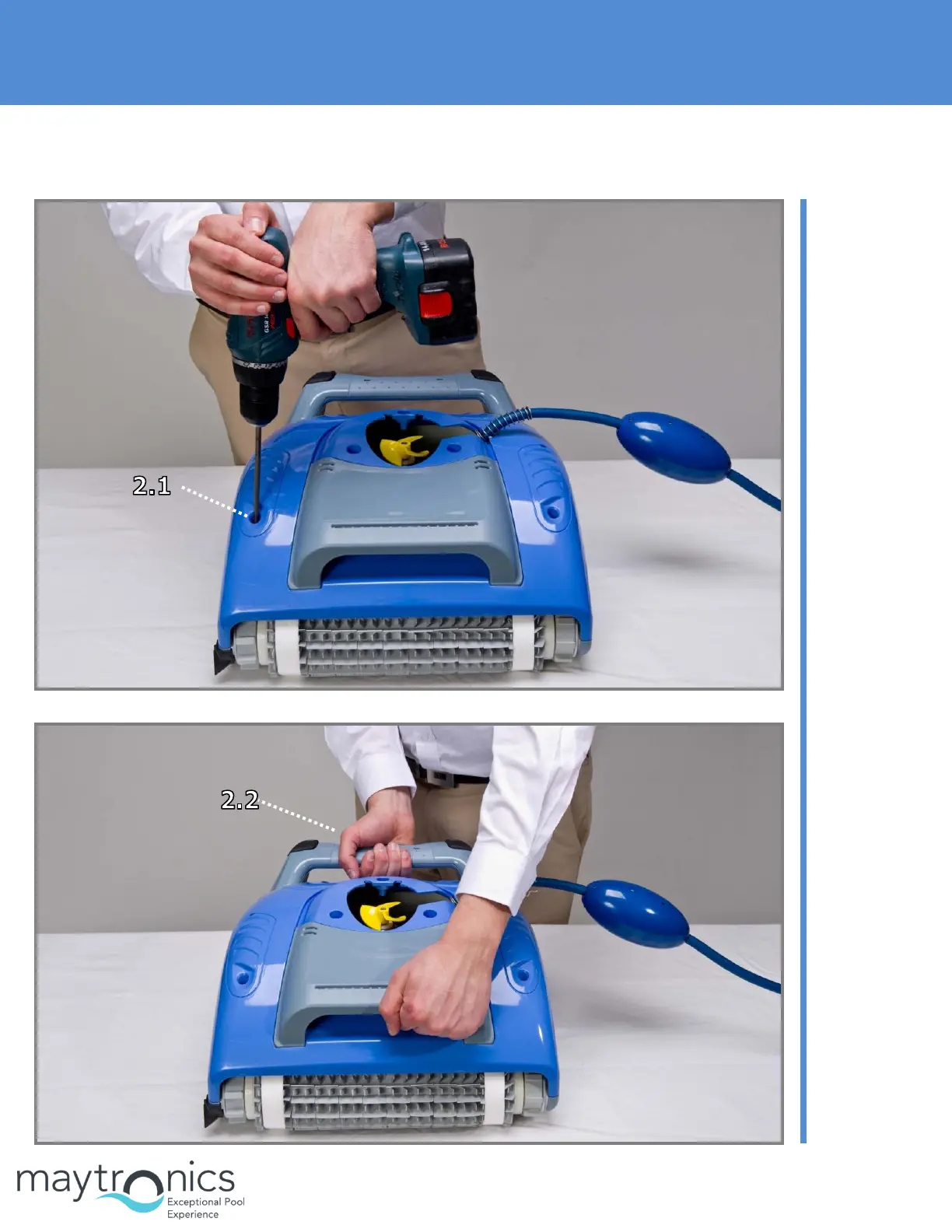 Maytronics Supreme M3 - 2. Dismantling the Outer Casing; Step 2.1 Unscrew the 4 screws holding the cover in place; Step 2.2 Hold the outer casing on both sides. Pull it up to remove it