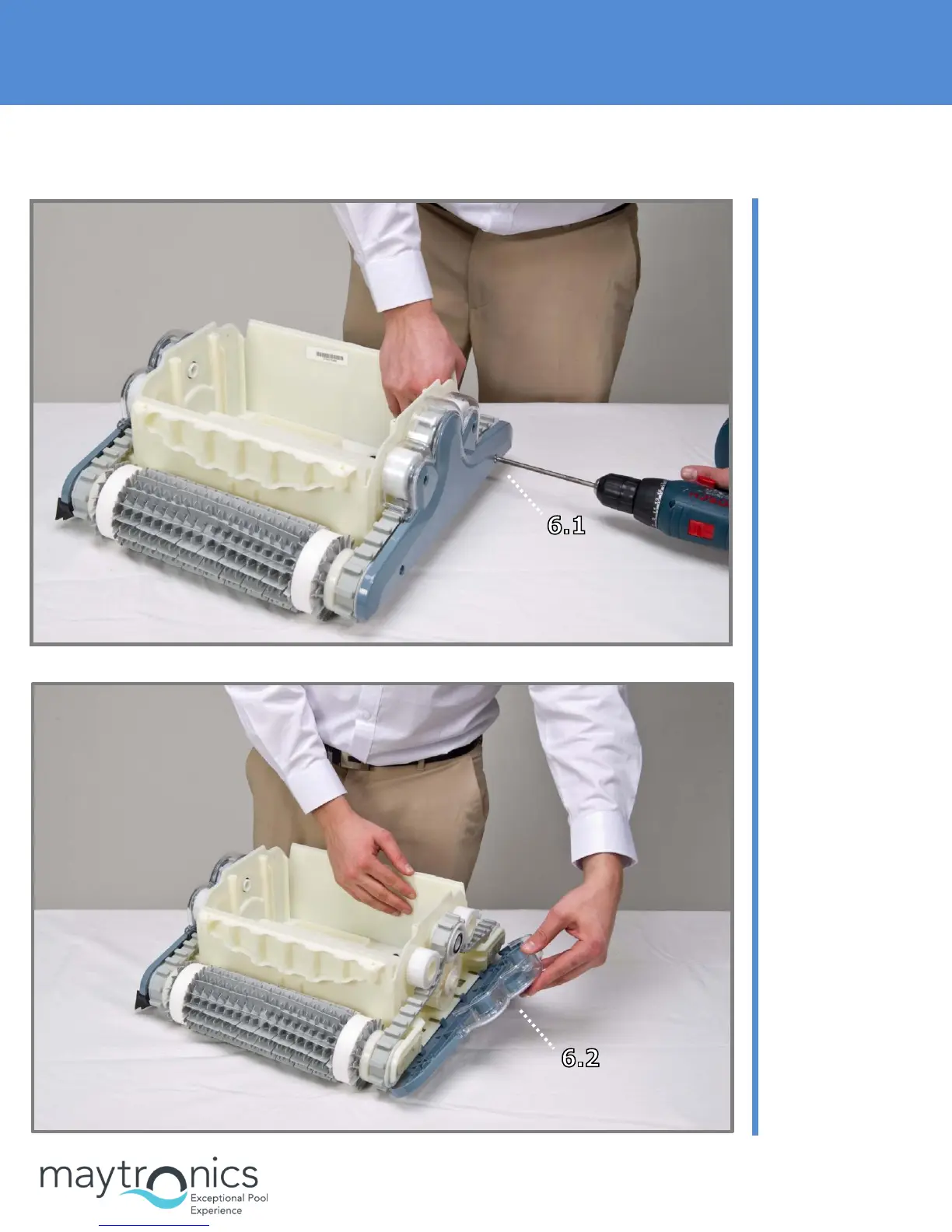 Maytronics Supreme M4 - 6. Dismantling the Side Panels; Step 6.1: Unscrew side panel screws; Step 6.2: Pull side panels off