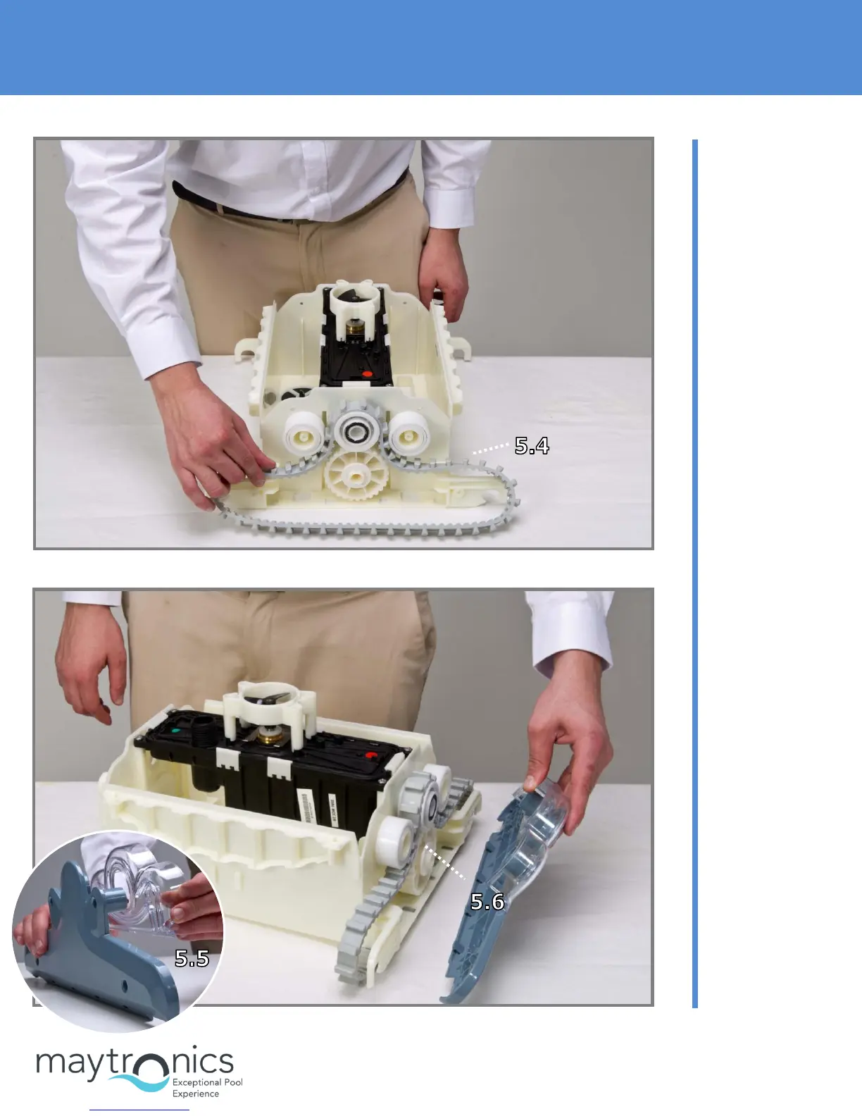 Maytronics Supreme M4 - Step 5.4: Place track; Step 5.5: Assemble track safety cover; Step 5.6: Insert side panel