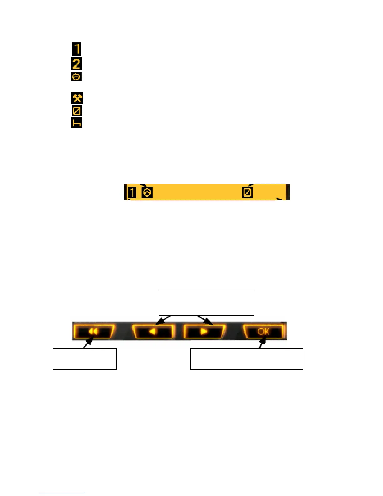 Meaning of different pictograms in the bottom line: