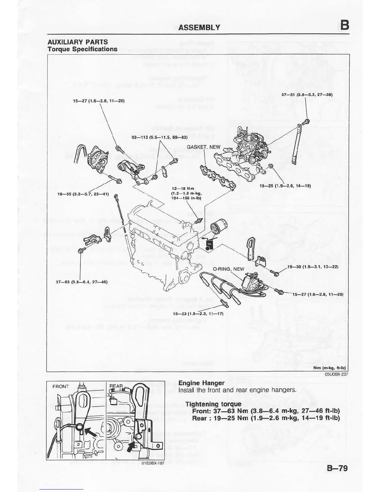 Mazda 121 - Auxiliary Parts Torque Specifications; Engine Hanger