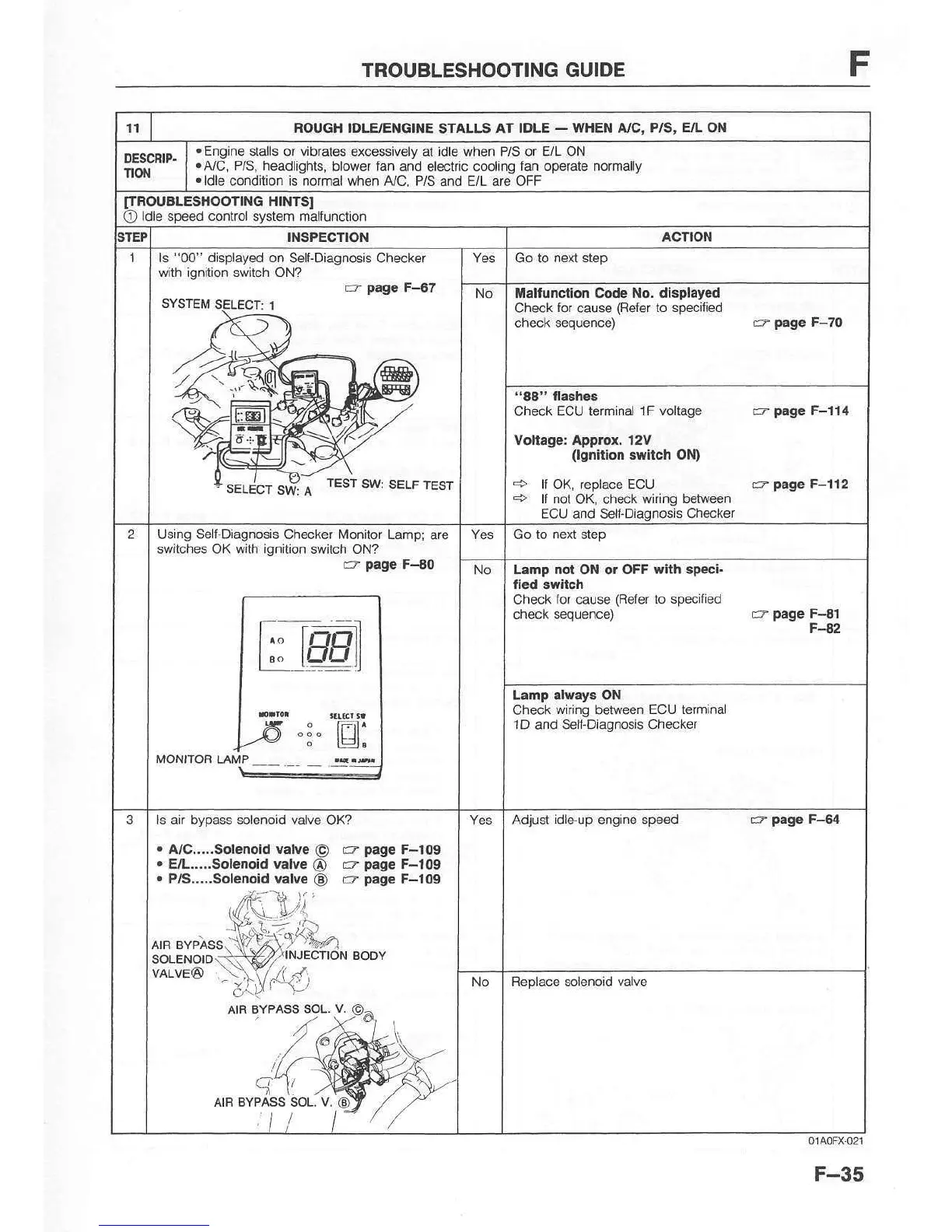 stalls or vibrates excessively at idle when P/S or E/L ON