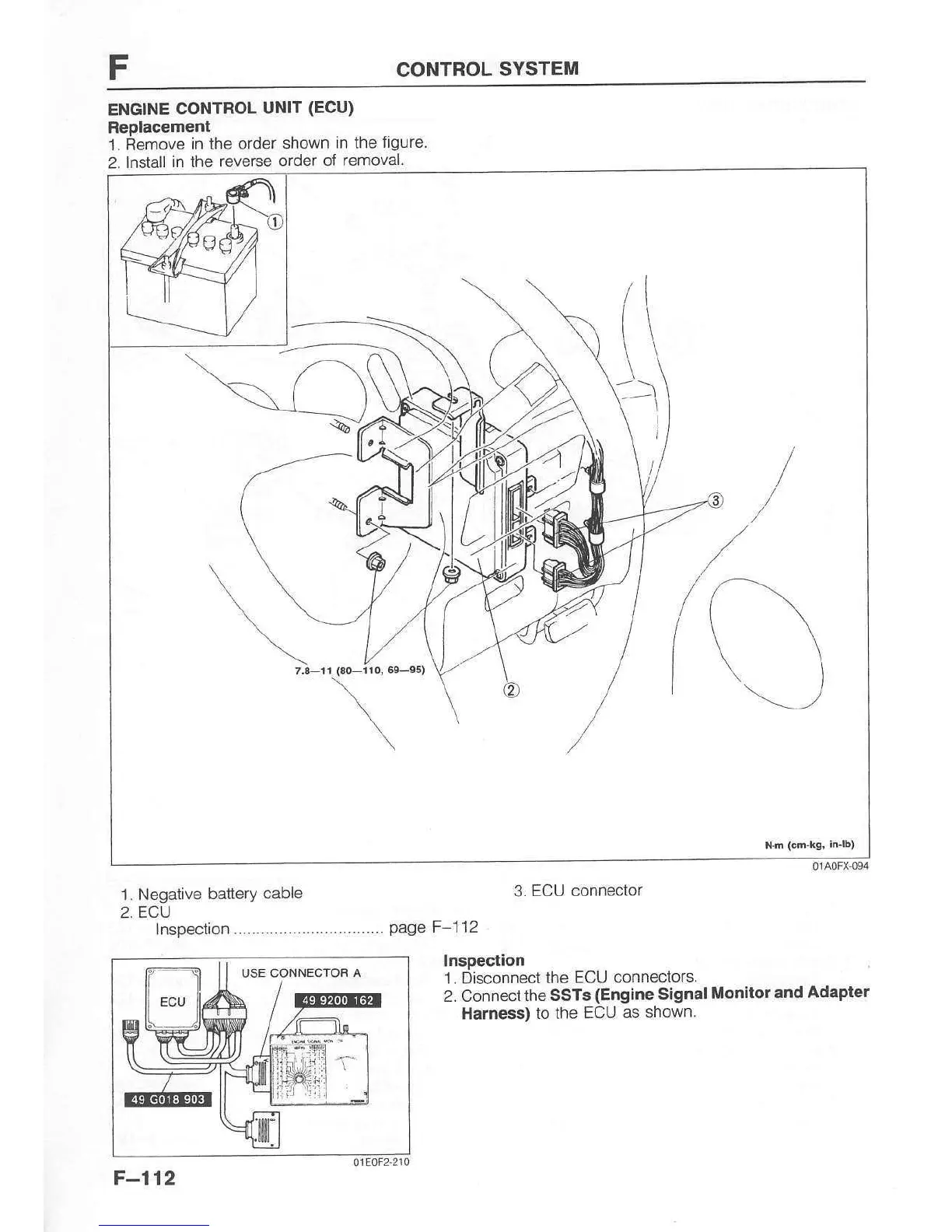 Mazda 121 - Engine Control Unit Replacement; Engine Control Unit Inspection; 2. Ecu; I N S P E C L I O N