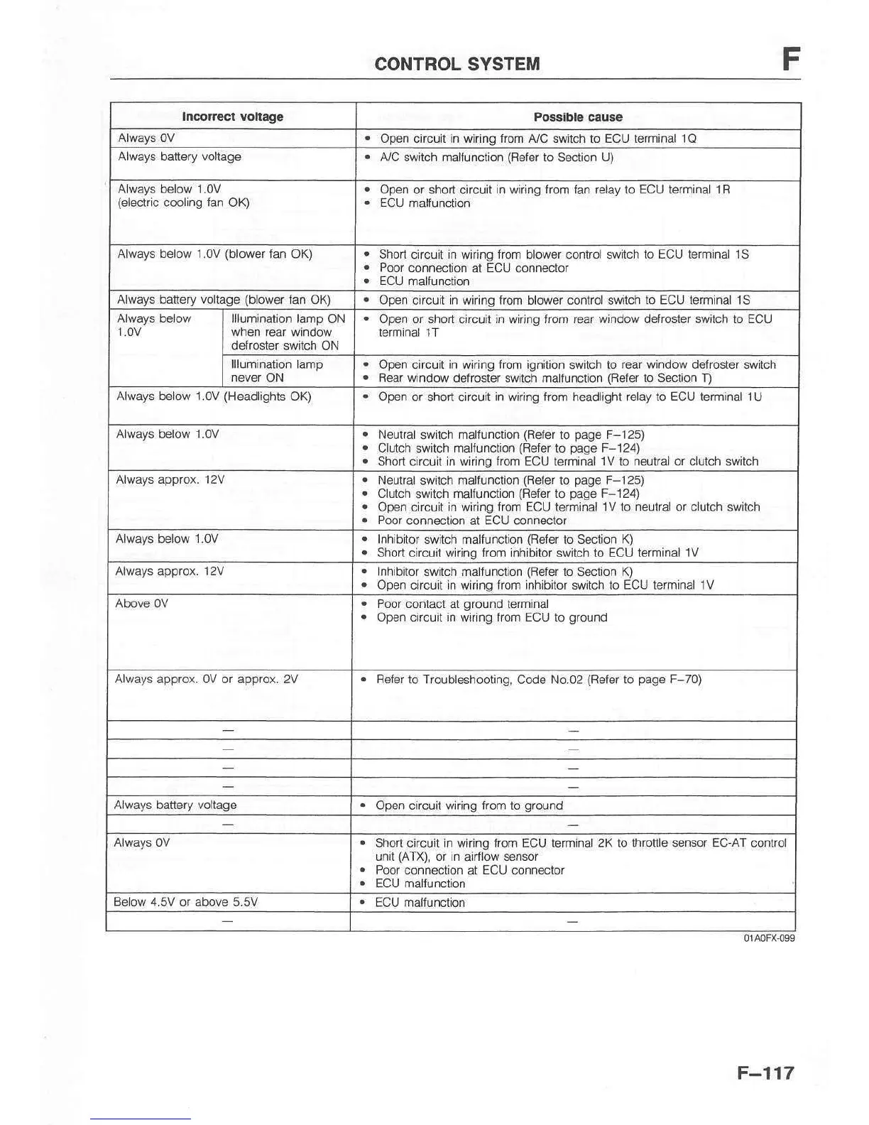 Shon circuit ln wnino lrom ECU terminal lV to neukal or ciltch switch
