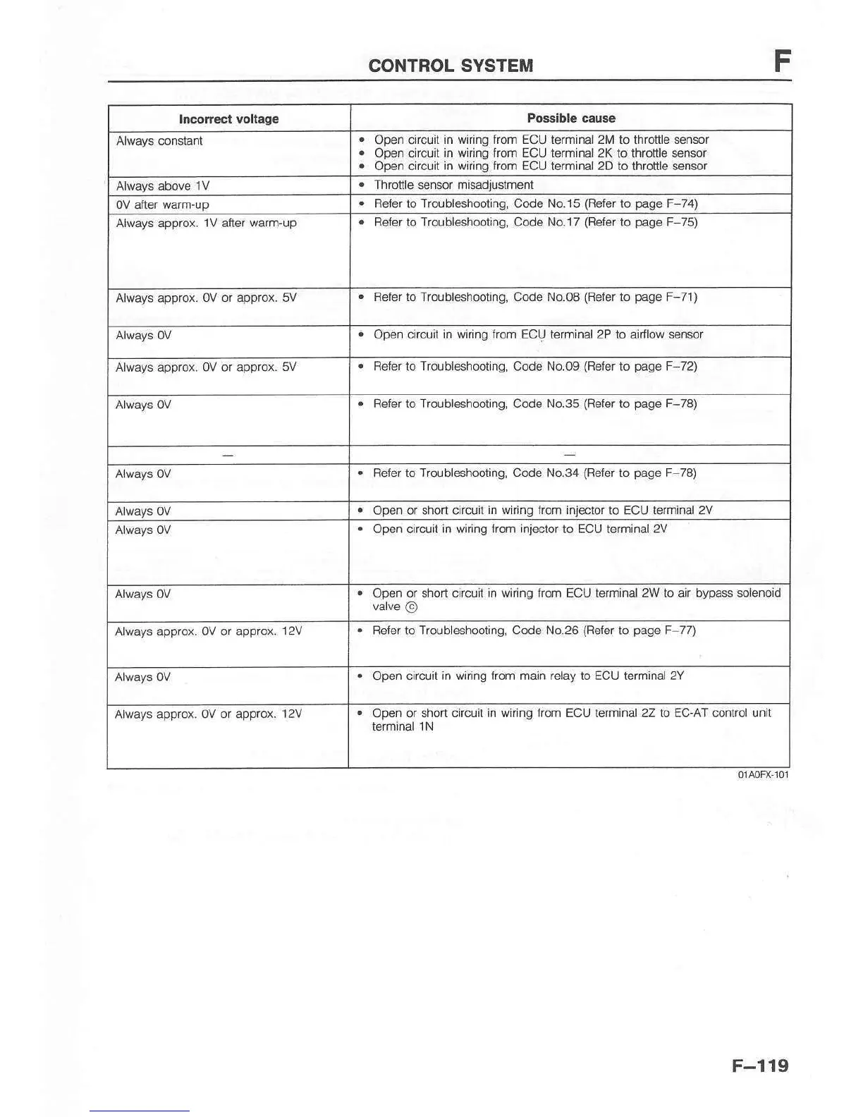 Open or shon circuil in wr ng lrom ECU lerminal 22 to EC'AT conlrol unit