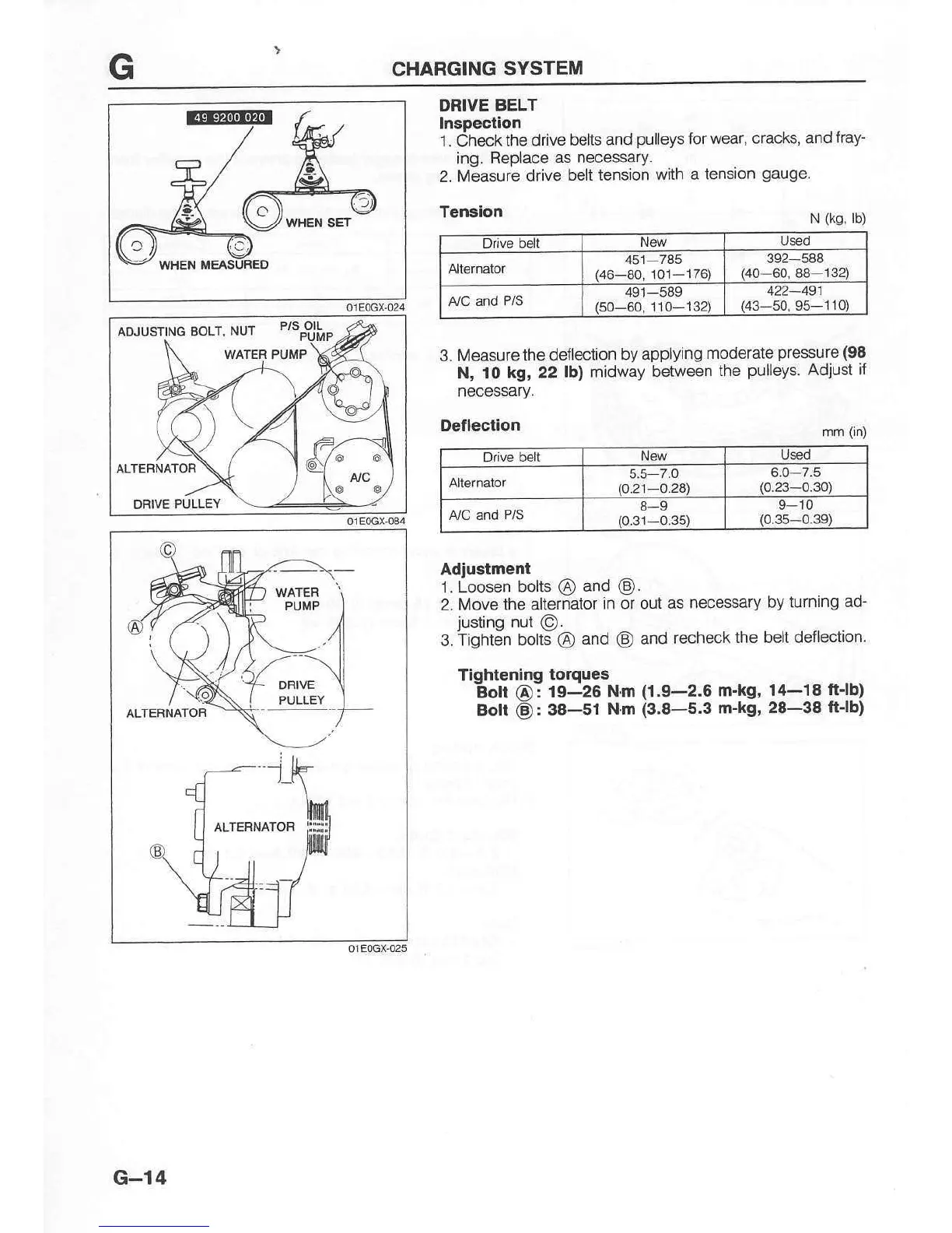 Mazda 121 - Drive Belt Inspection; Drive Belt Tension; Drive Belt Deflection; Drive Belt Adjustment