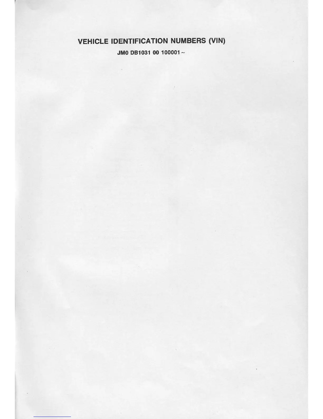 Mazda 121 - Vehicle Identification Numbers (VIN)