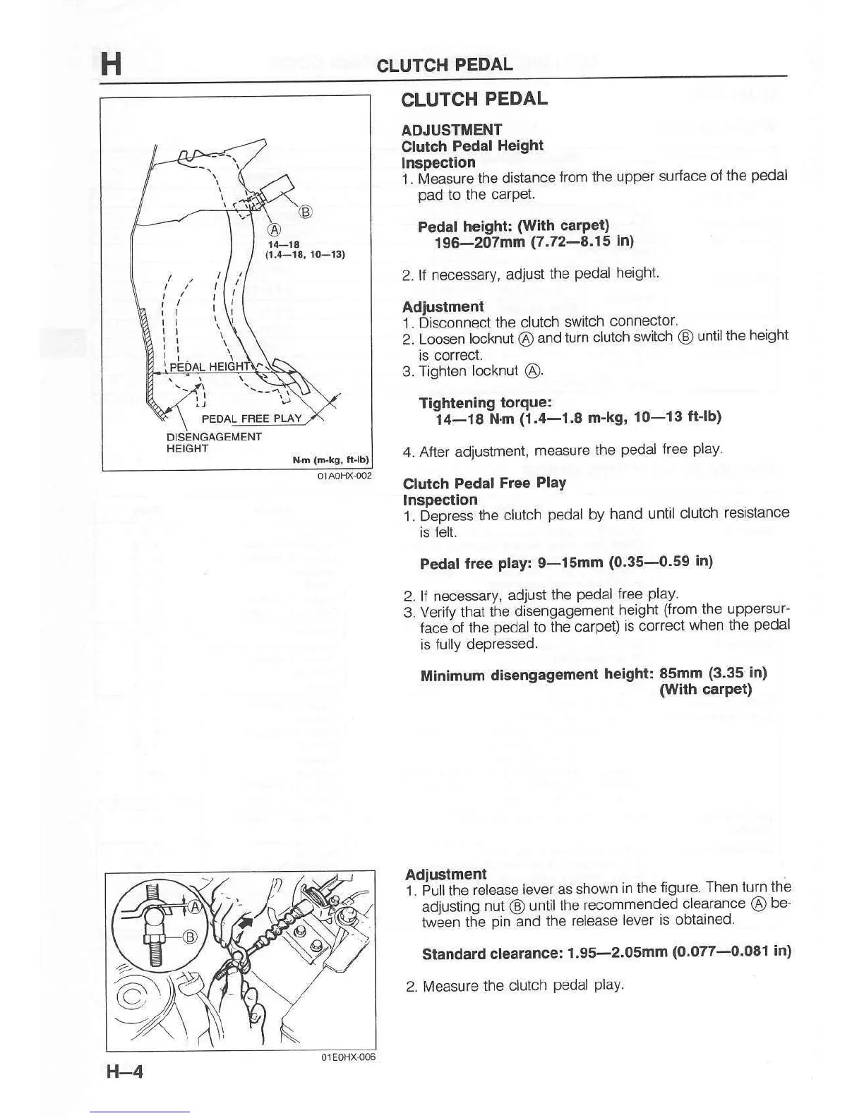Mazda 121 - Clutch Pedal Adjustment; Clutch Pedal Free Play