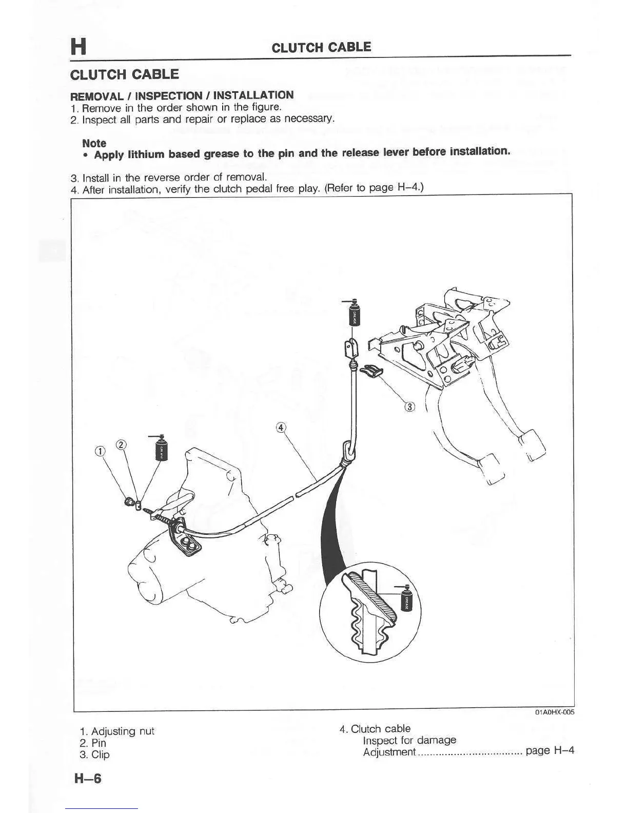 Mazda 121 - Clutch Cable Removal;Inspection;Installation; Adjustment