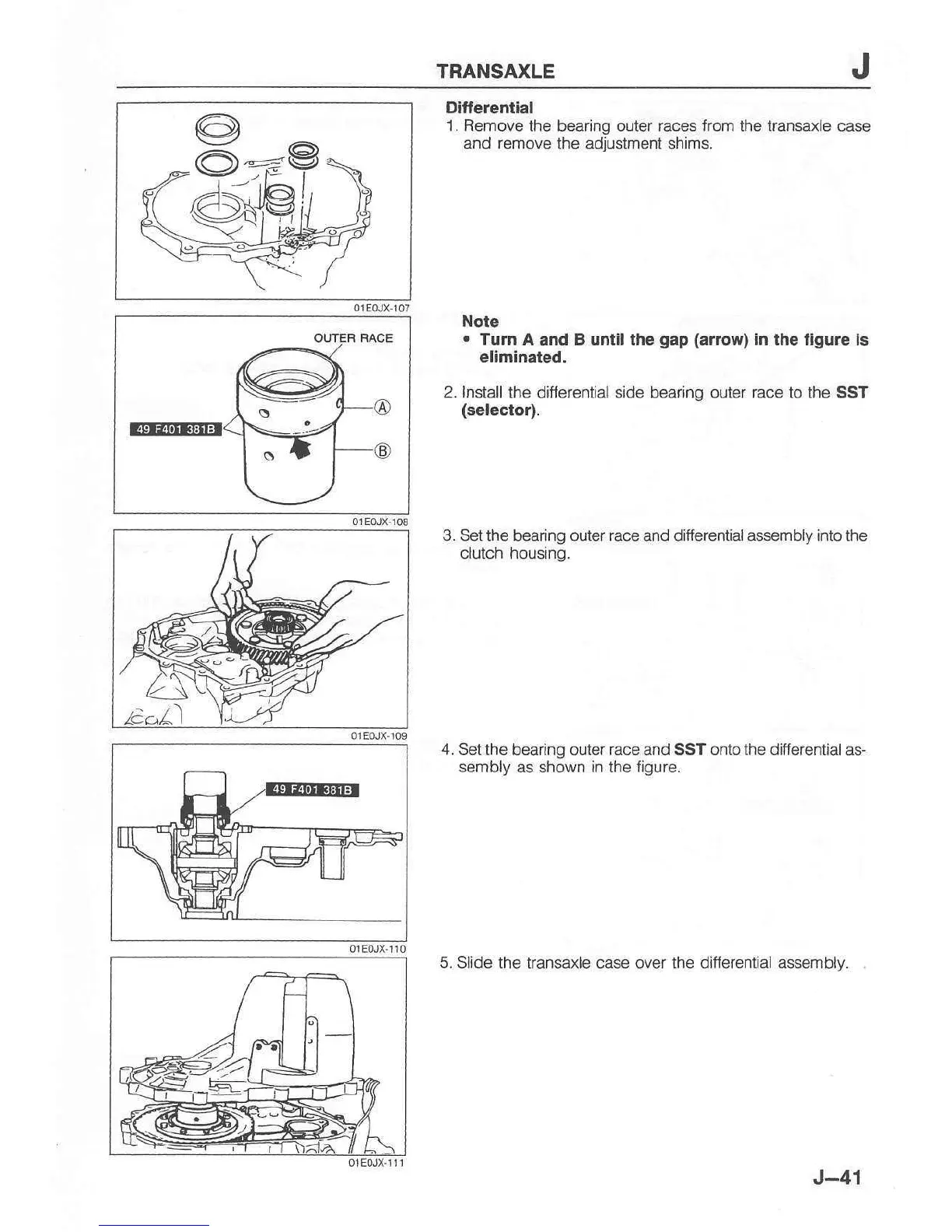 3. Set the bearing outer race and diiferential assembly into the