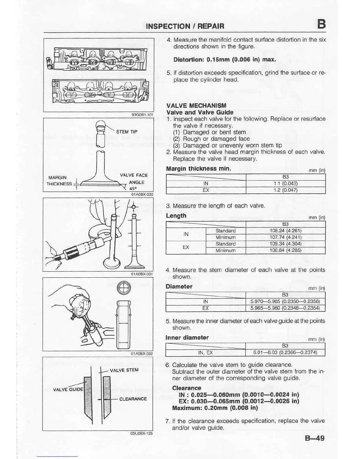 the valve head margin lhickness 01 each