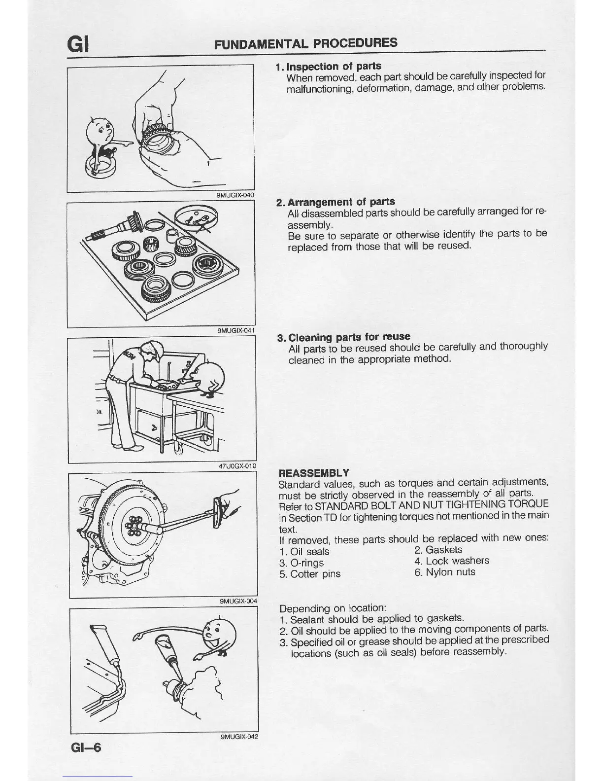 Mazda 121 - Reassembly; Inspection of Parts; Arrangement of Parts