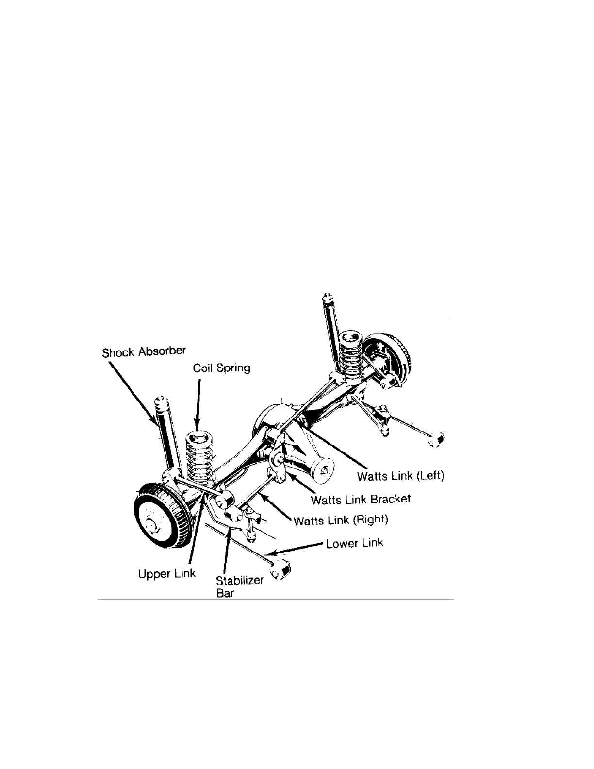 links, vertically mounted shock absorbers and coil springs. A 3-piece