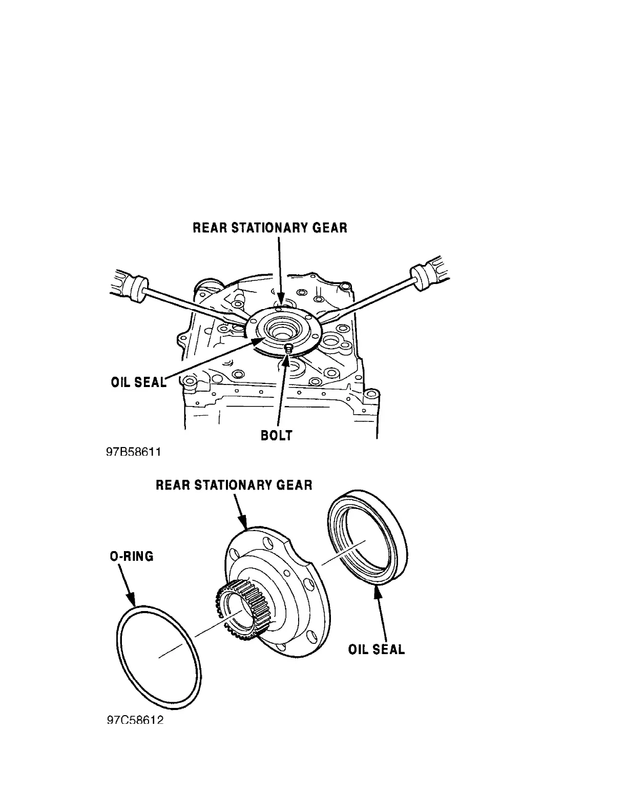 Fig. 2: Rear Stationary Gear, Oil Seal & Bolt - Remove & Clean