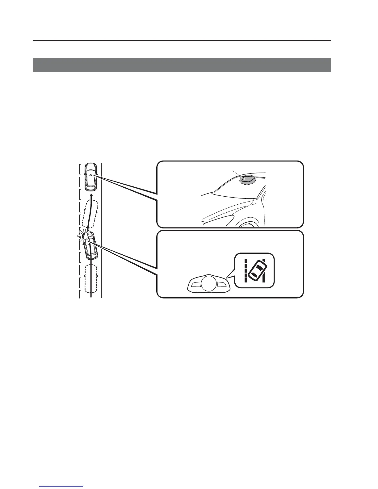 The system detects the white or yellow lines on the traffi c lane using the forward sensing