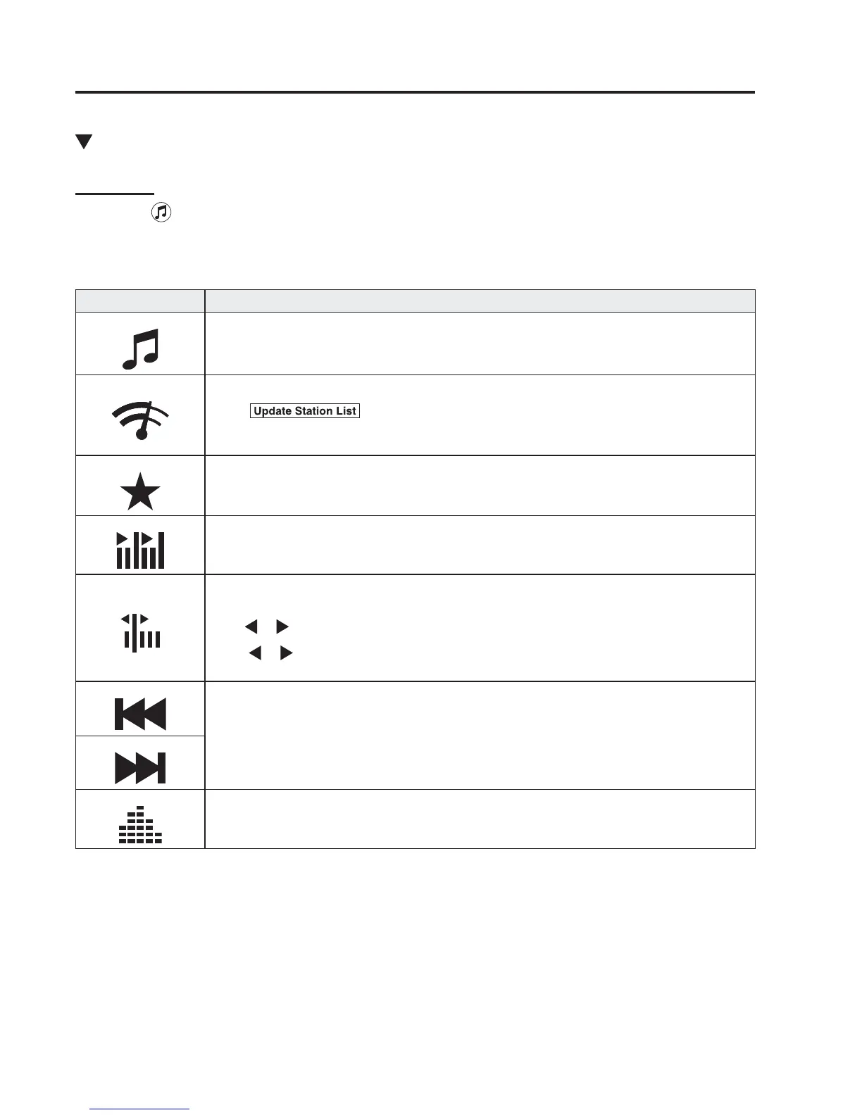 the desired radio, the following icons are indicated in the lower part of the centre display.