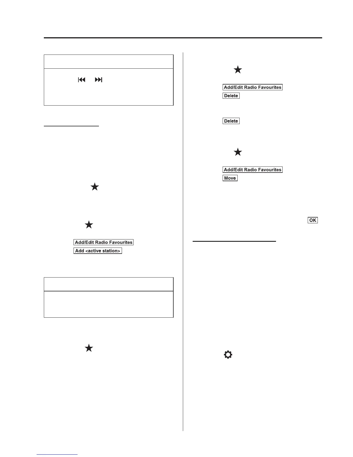 Selecting radio station from Favourites