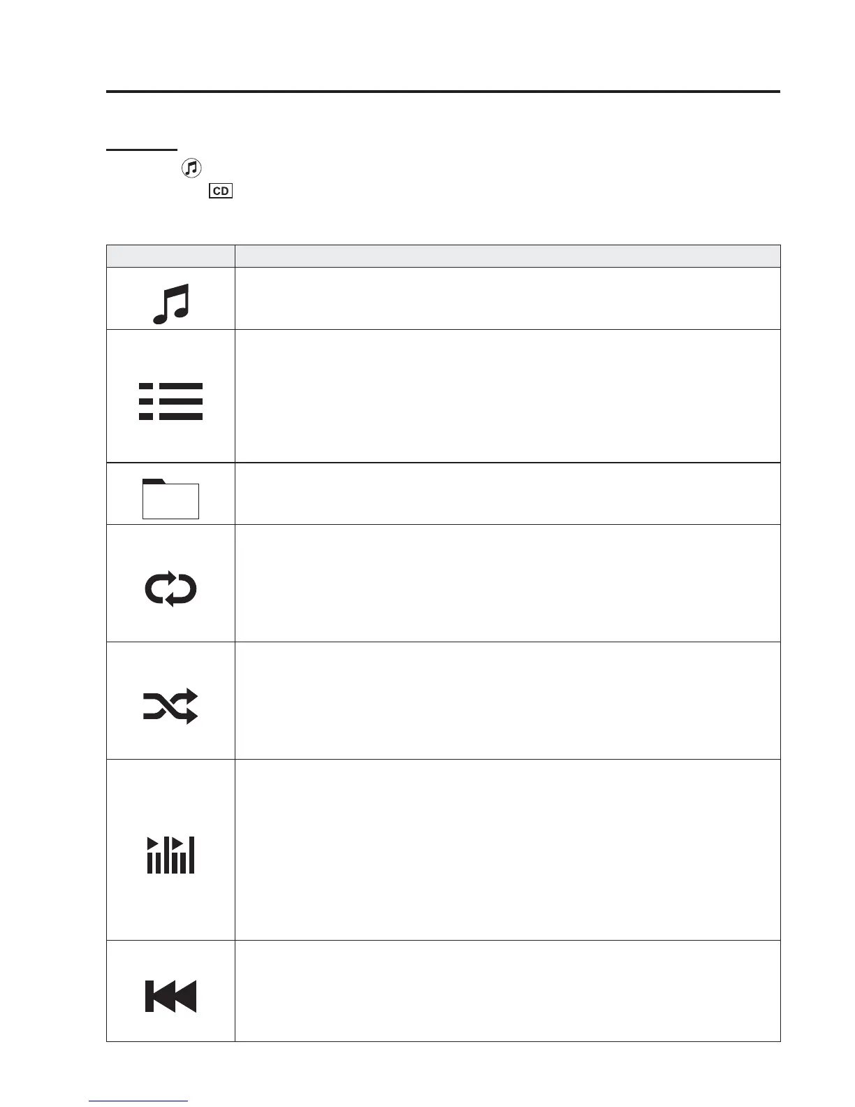 Displays the fi le list of the folder currently being played.