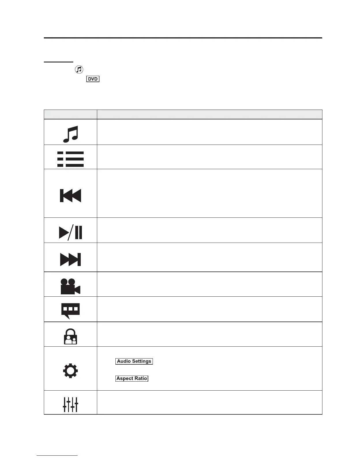 Changes camera angle each time the icon is selected (usable DVDs only).
