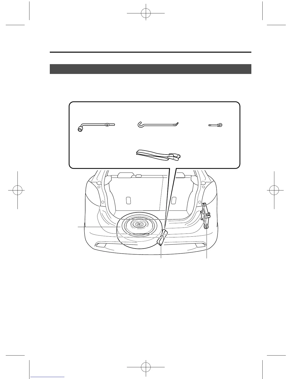 Spare tire and tools are stored in the locations illustrated in the diagram.