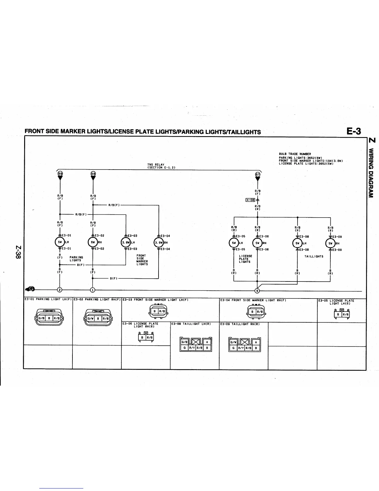 Mazda 2000 Miata MX-5 - Front Side Marker, License Plate, Parking, and Taillights