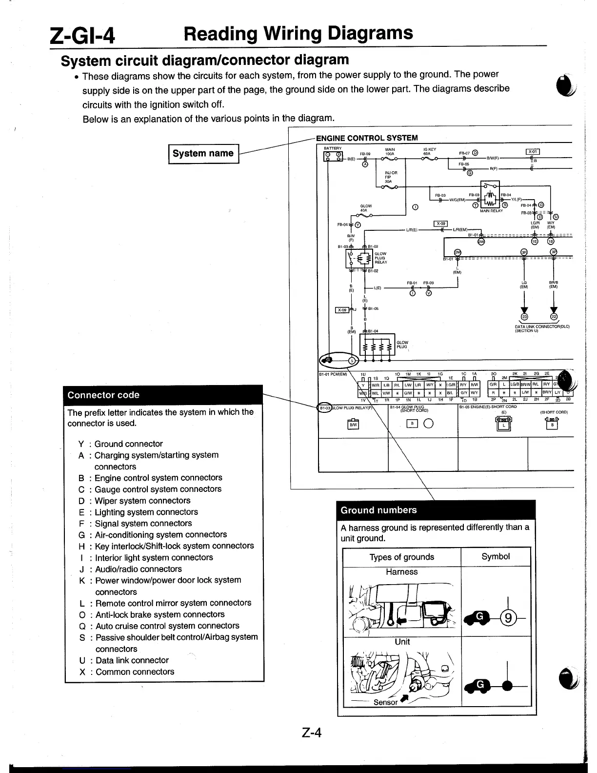 Mazda 2000 Miata MX-5 - System Circuit Diagram and Connector Diagram