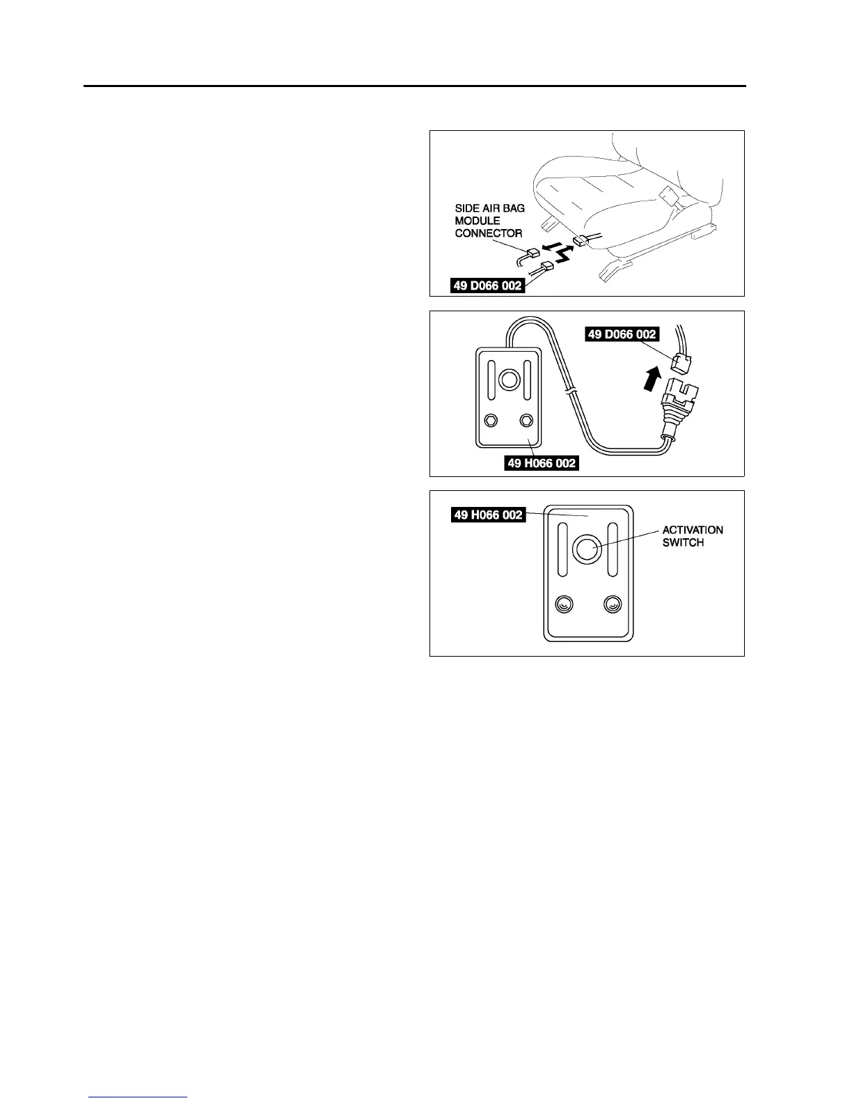 1. Disconnect the side air bag module connector.