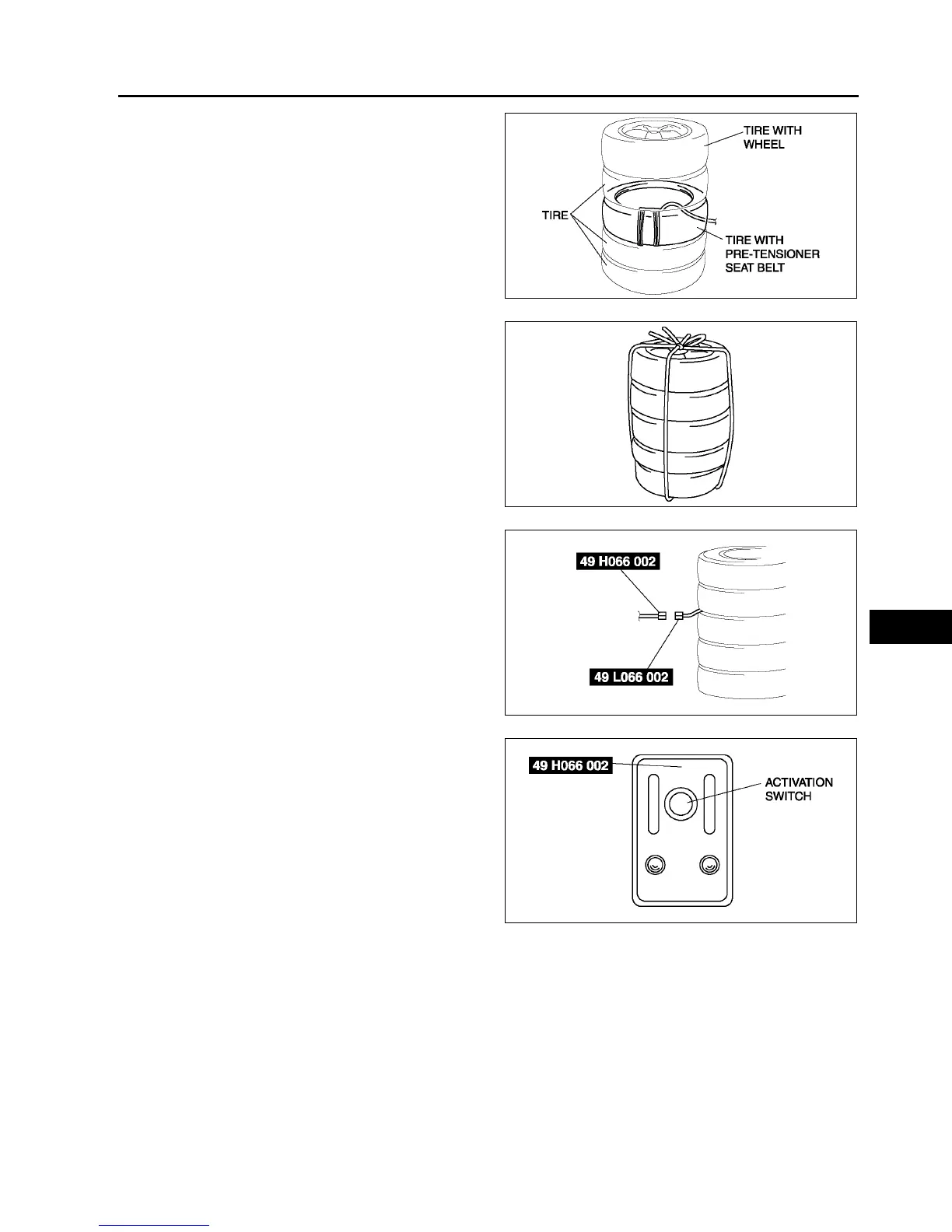 4. Stack the tire with the pre-tensioner seat belt on