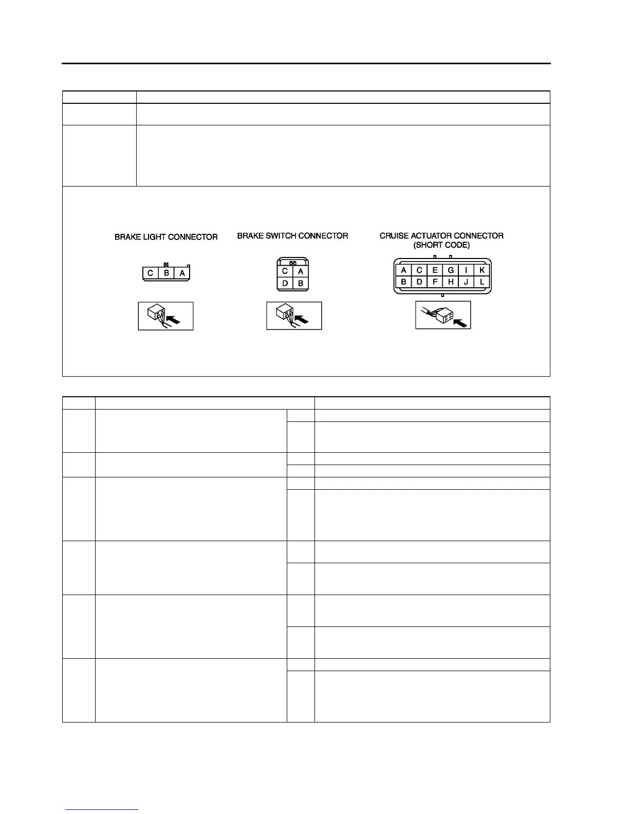 • Open circuit in wiring harness between brake switch and cruise actuator terminal C