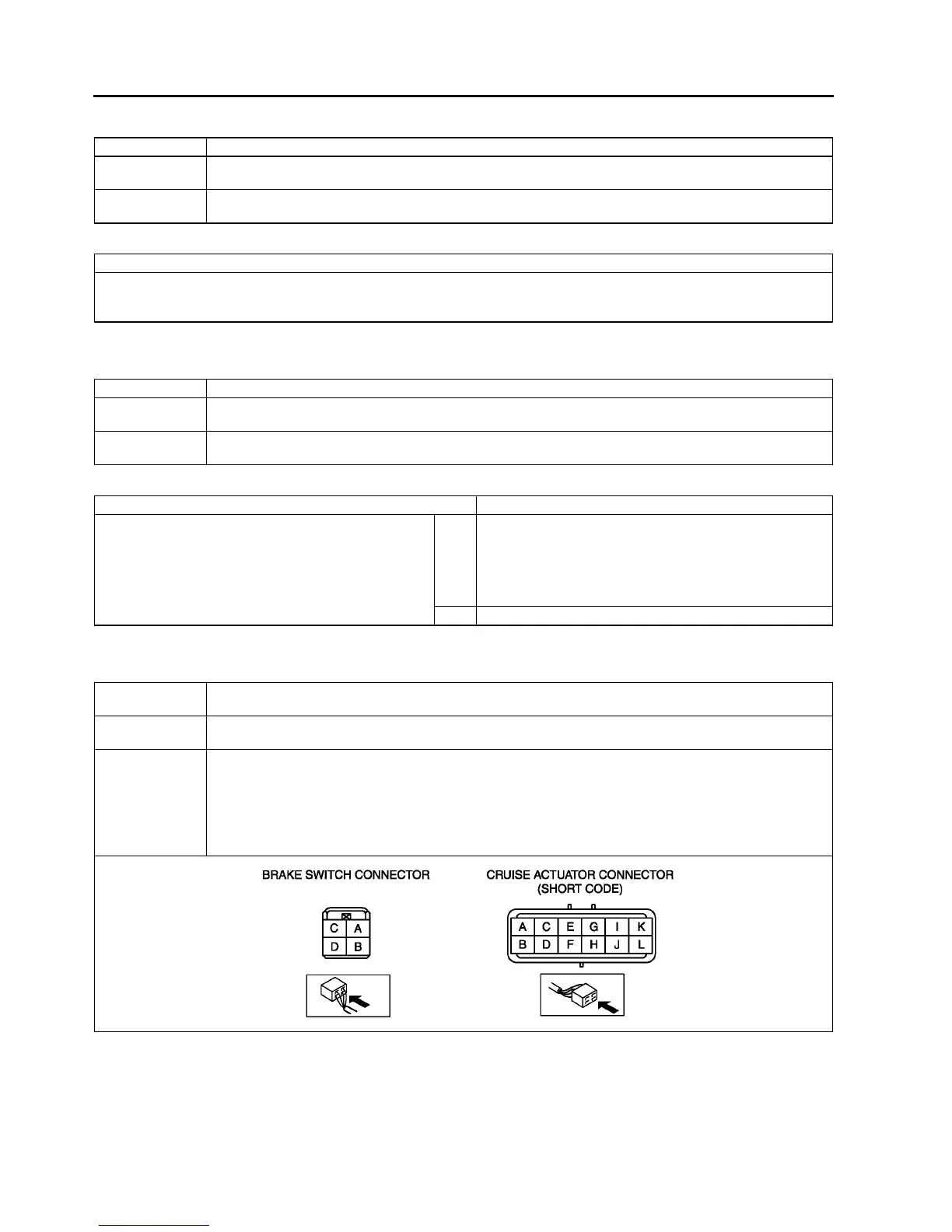 • Open or short circuit in wiring harness between brake switch and cruise actuator terminal C