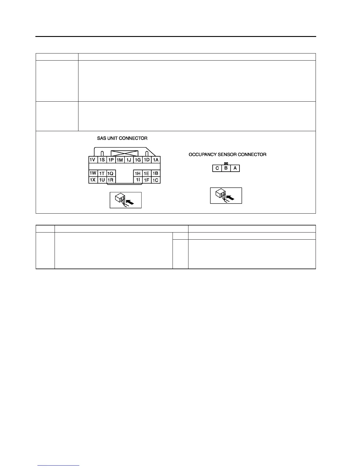• Open or short circuit in wiring harness between SAS unit and occupancy sensor