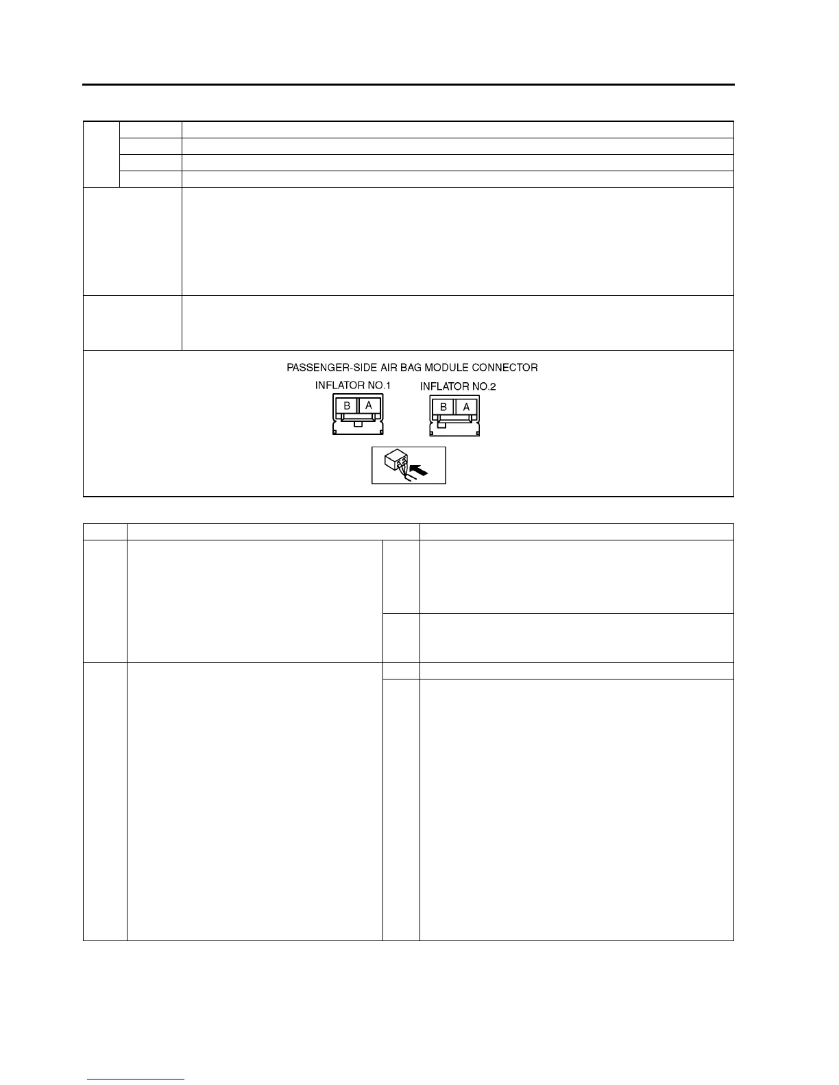 • Abnormal resistance (other than 1.4—2.9 ohm) detected in passenger-side air bag module (inflator