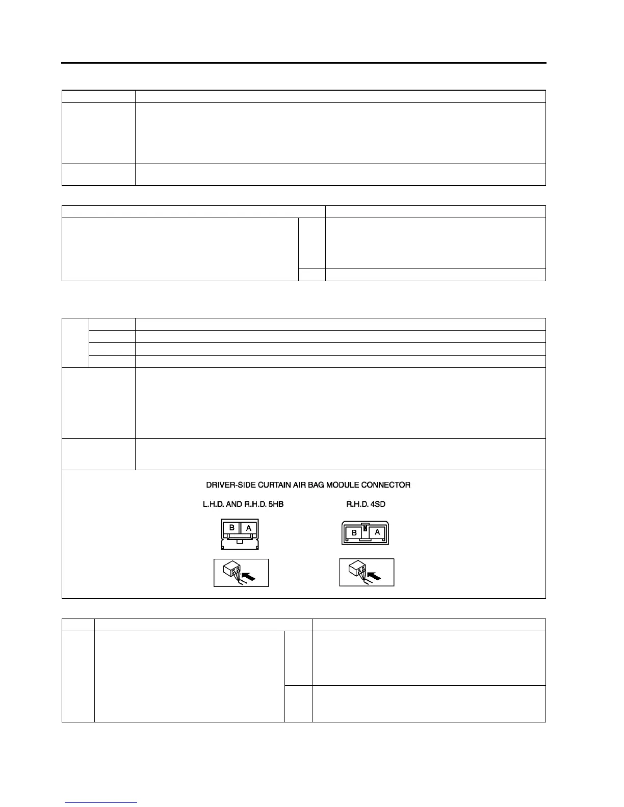 • Abnormal resistance (other than 1.4—3.2 ohm) detected in driver-side curtain air bag module circuit