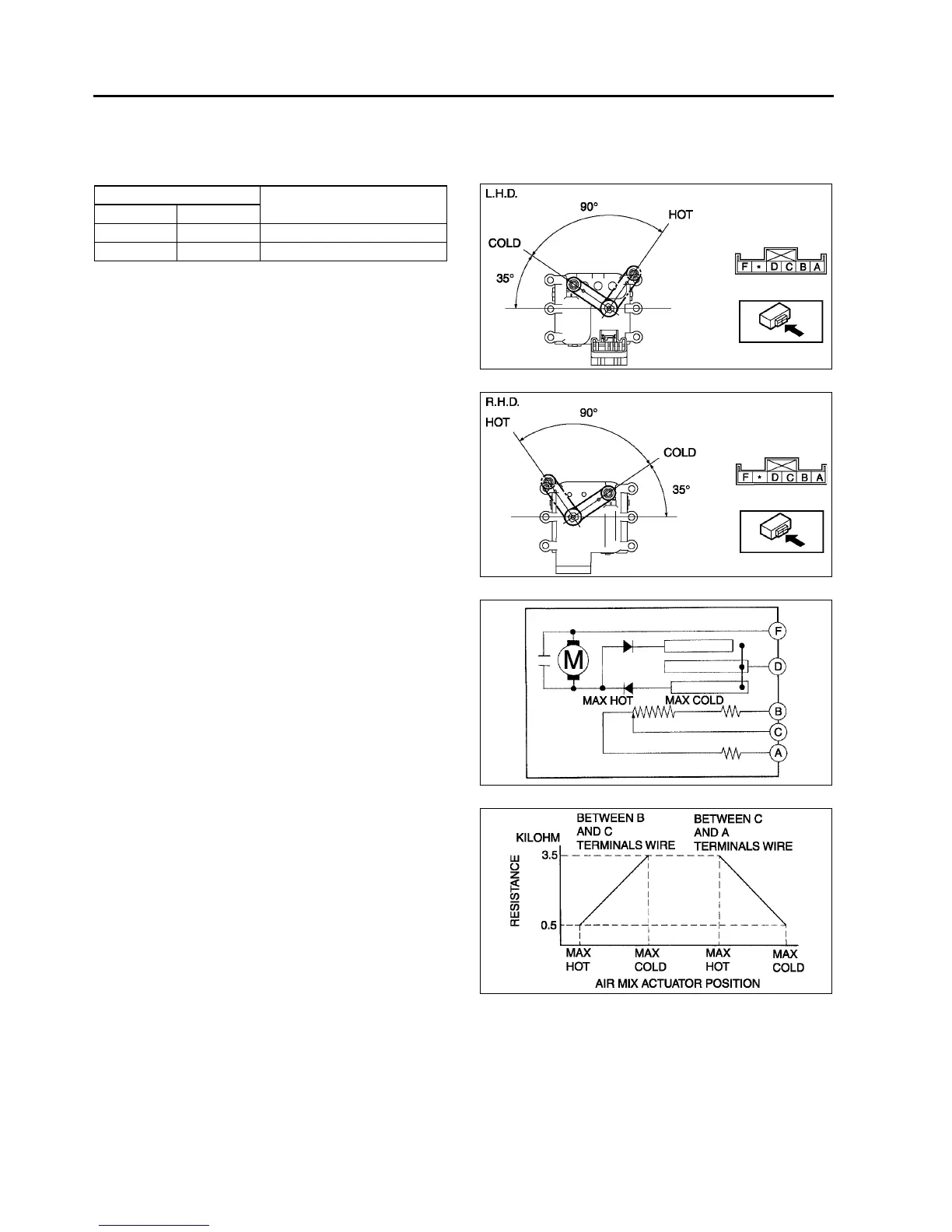 1. Connect battery positive voltage to terminal D or F and ground to terminal F or D of the air mix actuator.