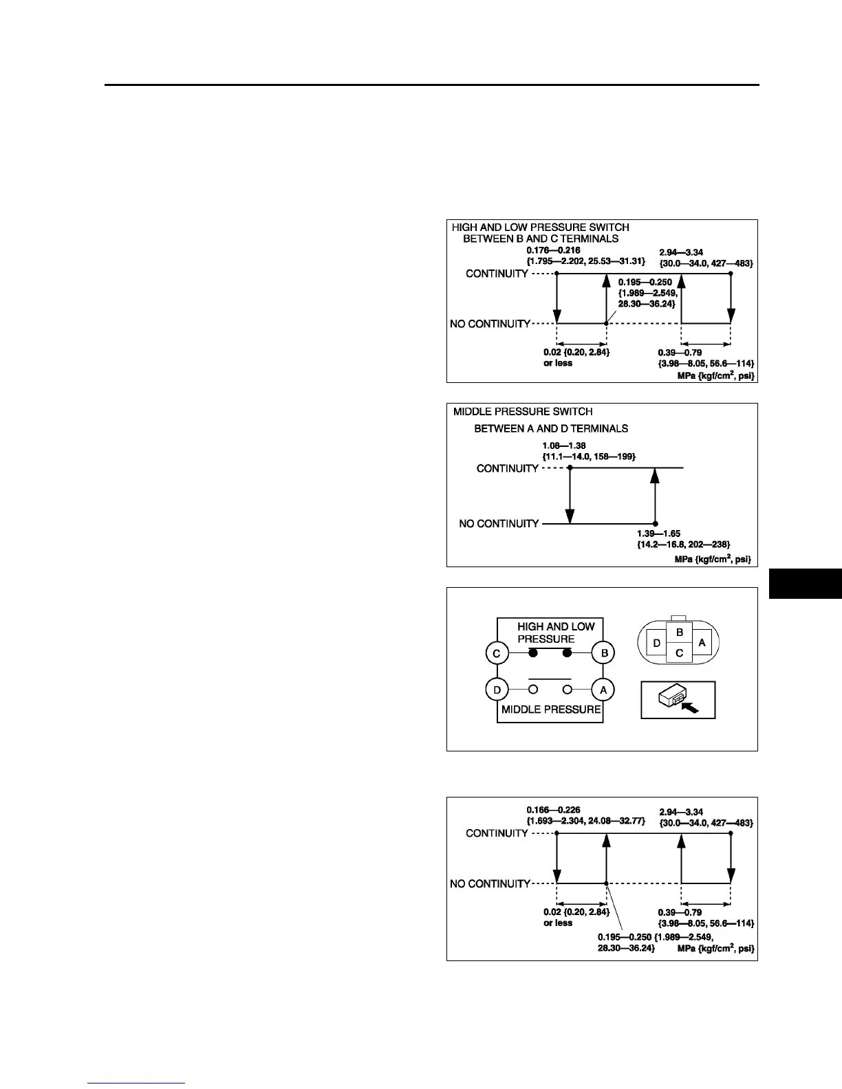 • If not as specified, replace the refrigerant pressure switch.